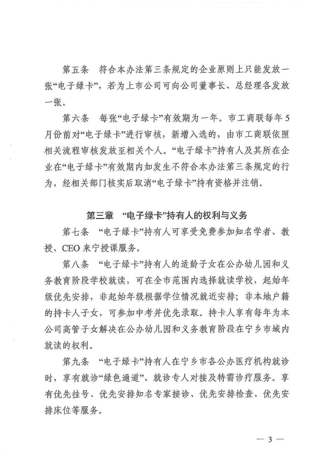 “绿卡”持有人应积极宣传宁乡招商政策和投资环境,积极参与我市举办的招商活动和公益活动。 “绿卡”仅限持有人本人使用,转借他人无效。若遗失,持有人须及时向市工商联申请补办。
